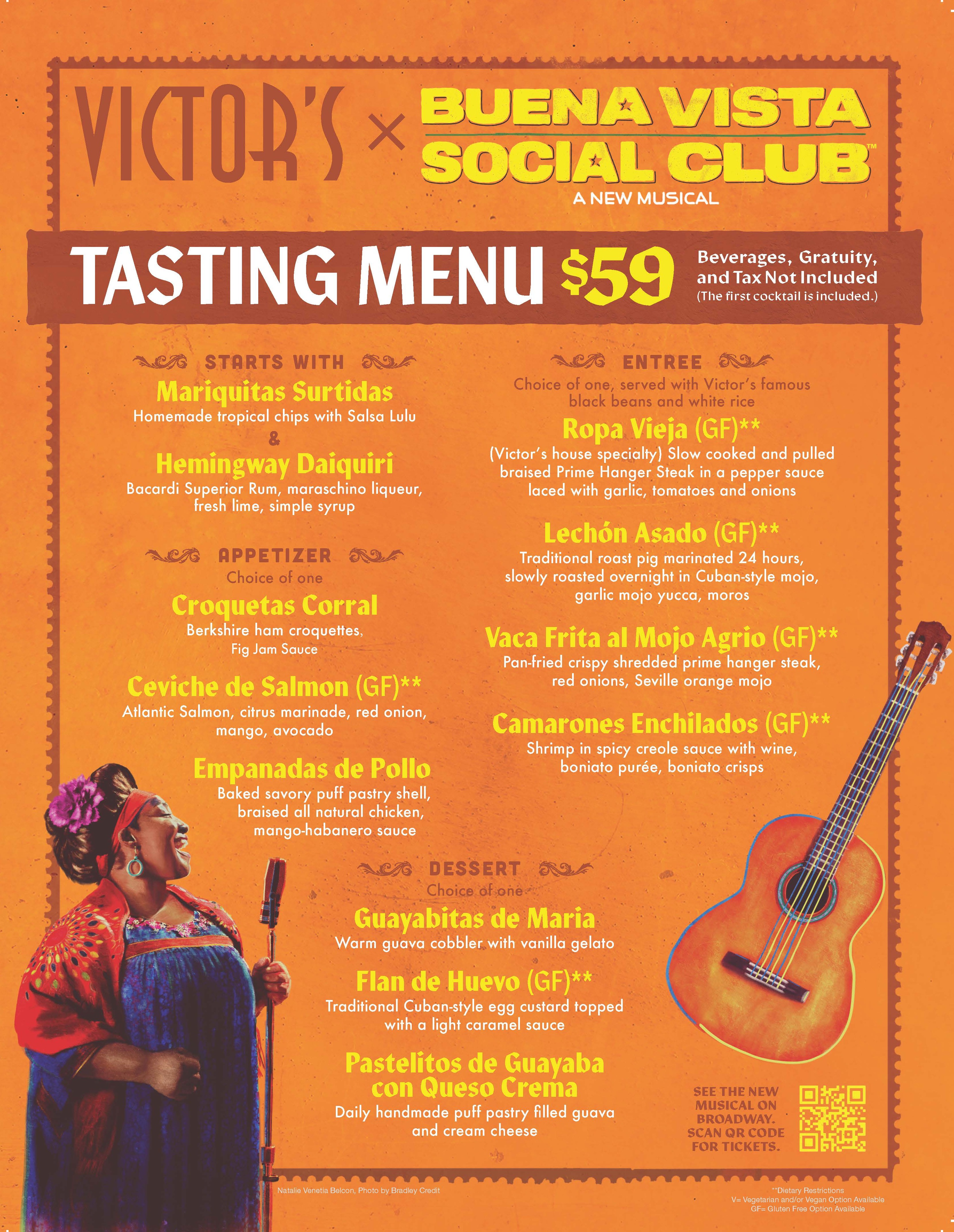 Transport yourself to the heart of Cuba with Victor’s Café’s exclusive Buena Vista Social Club Tasting Menu — a culinary celebration of music, flavor, and timeless tradition. This special three-course menu is inspired by the legendary Cuban ensemble that brought Havana’s golden age of sound to the world. For $59 per person, enjoy a vibrant prix fixe menu